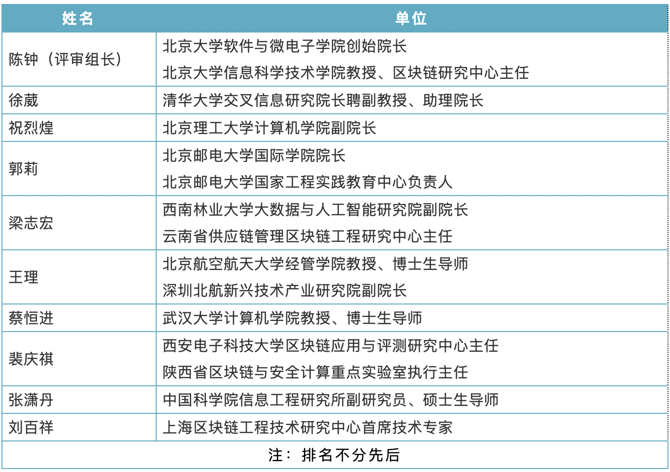 本次评审邀请到了国内区块链知名专家,再次感谢各位专家对本次开发大赛的支持。评审专家名单如下。