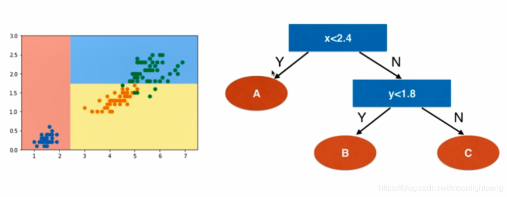 X_l, X_r, y_l, y_r = split(X, y, d, v)