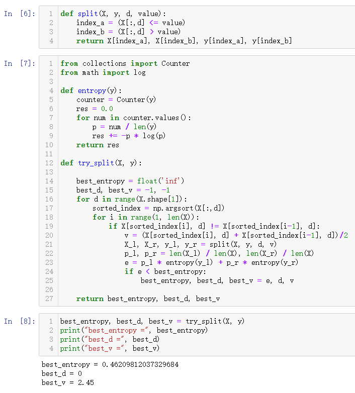 d维度,best_d 是在哪一个维度 best_v哪一个阈值