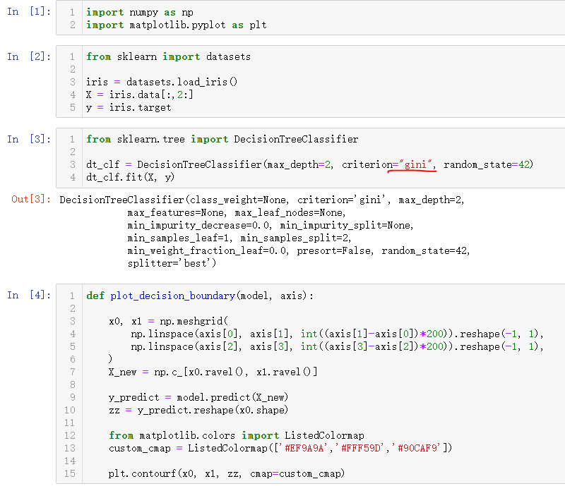 dt_clf = DecisionTreeClassifier(max_depth=2, criterion="gini", random_state=42)