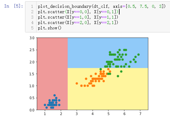 plot_decision_boundary(dt_clf, axis=[0.5, 7.5, 0, 3])