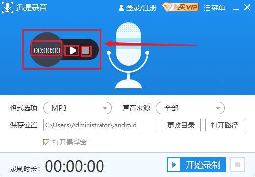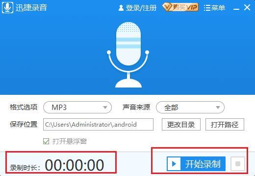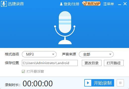 虽然页面简洁,但是迅捷录音软件的功能非常强大,提供多种录音格式和声音来源供大家选择,保存位置的设置也非常简单,还有显眼的“开始录制”键和录制时长。
