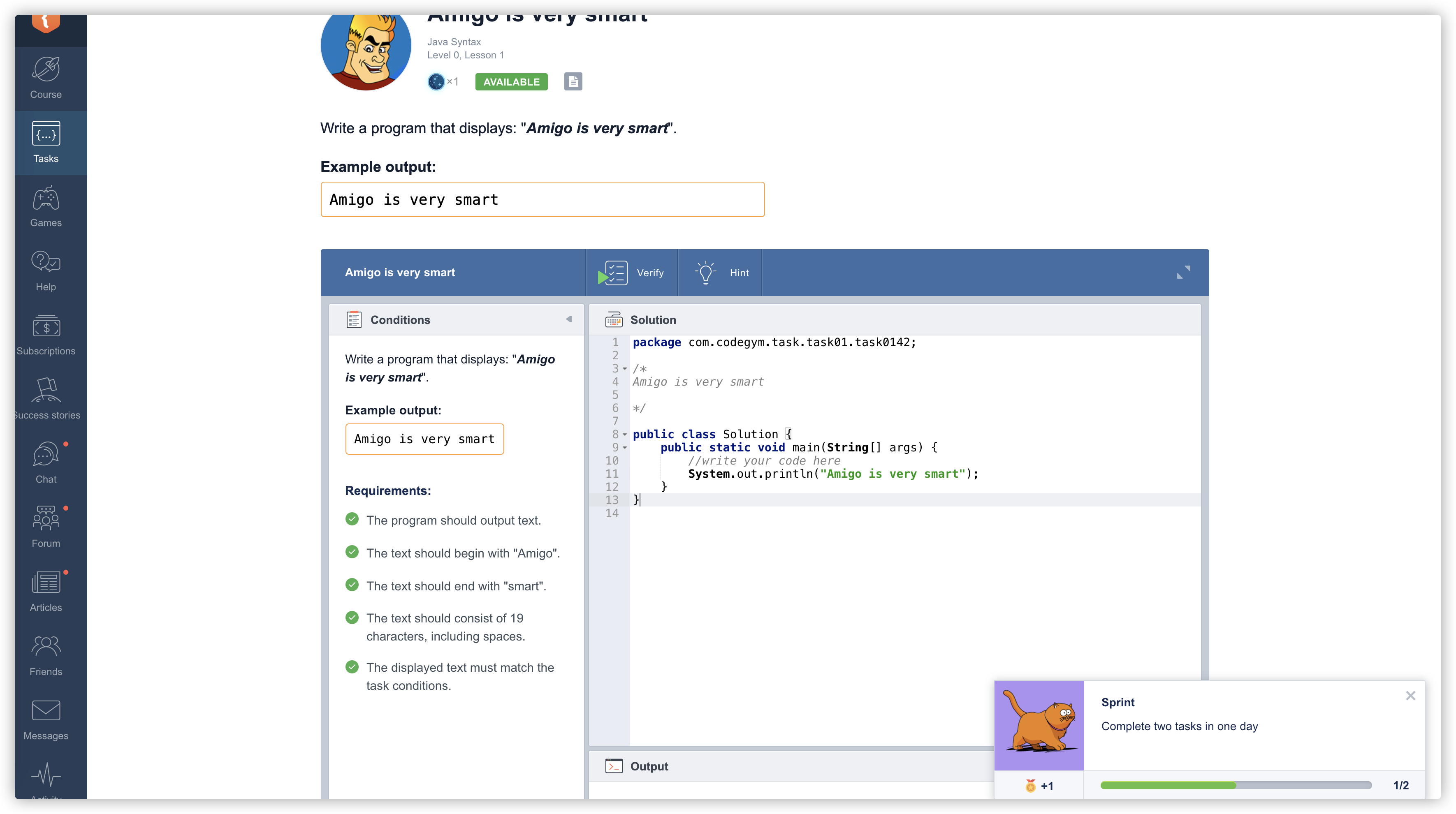 Codegym是一个以Java为中心的平台,它比其他平台上都要更加深入的介绍Java,这个网站将理论和实践知识相结合,你可以在上面找到1200多个练习项目。主要具备以下特点:
