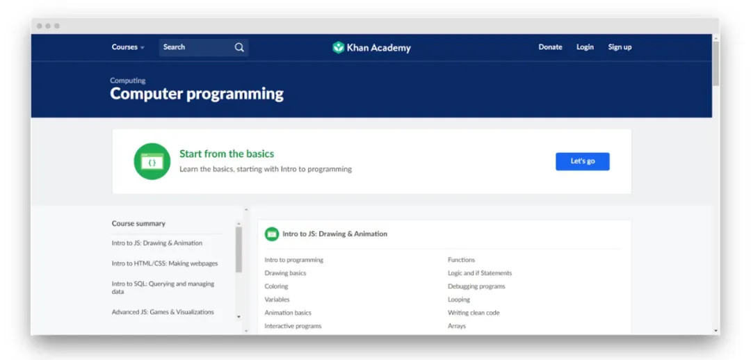 尽管Khan Academy没有Java或Python教程,但该平台是理解计算机科学基本概念的一个很好的起点,完成这些课程后,你将会了解数据结构和算法相关的知识,并获得“程序员思维”,这个网站具有以下特点: