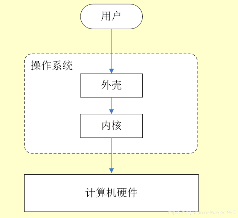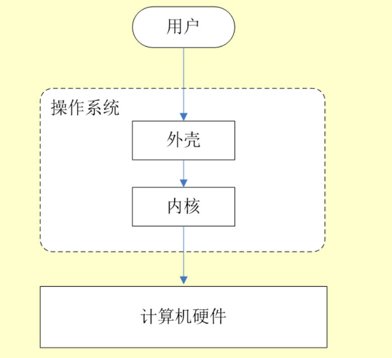 - 操作系统分内核与外壳(我们可以把外壳理解成围绕着内核的应用程序,而内核就是能操作硬件的程序)。