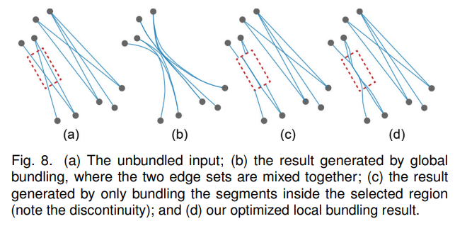 - We propose an optimization framework to flexibly blend edge bundling results and allows to reduce ambiguities when edges overlap with nodes.