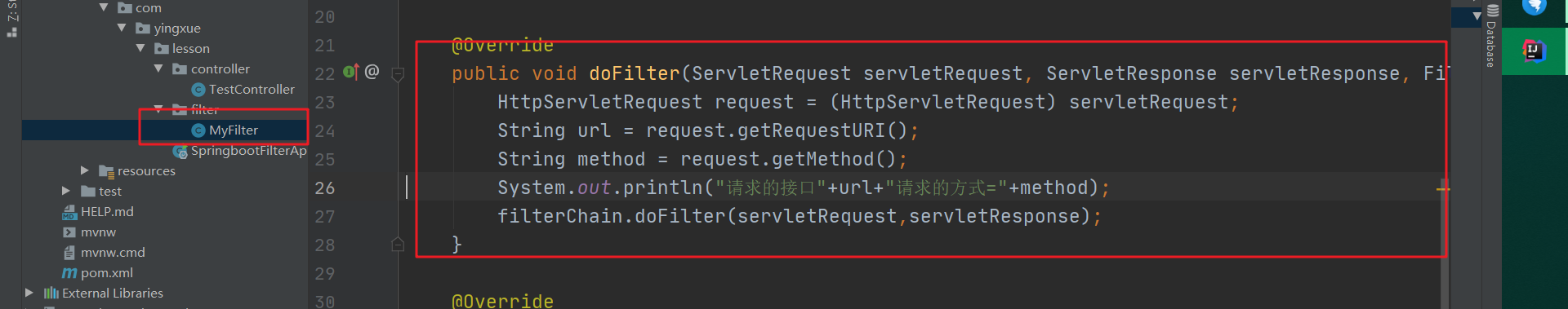 filter有三个方法,其中初始化(init)和摧毁(destroy)方法一般不会用到,主要是doFilter这个方法