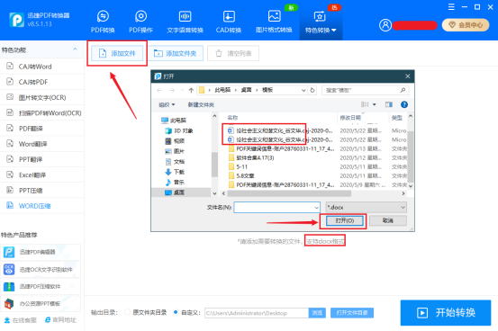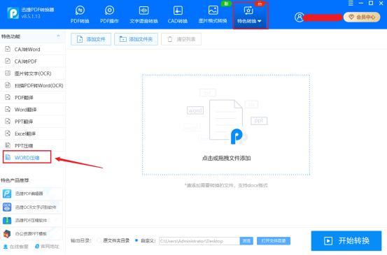 对于电脑空间的利用,并不是简单的删除就可以解决的,需要重视的平时对电脑的清理和各种文件的管控。今天小编就给大家带来一个新知识点,WORD文档的压缩技巧。打开迅捷PDF转换器,找到并点击特色转换中的“WORD压缩。”