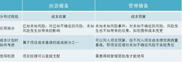- 管理储备:项目经理无权直接使用、需要上级领导批准
