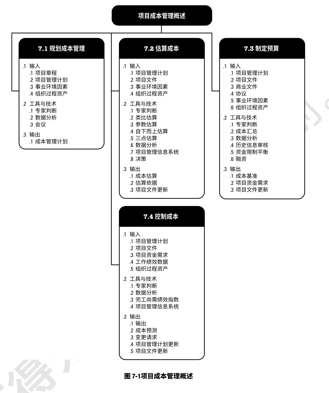 成本管理:涉及在一个允许的预算范围内确保项目团队完成一个项目所需要开展的管理过程。