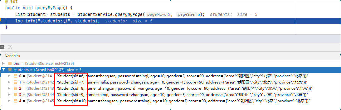 public static List<Student> queryByPage(Integer pageNow, Integer pageSize) {