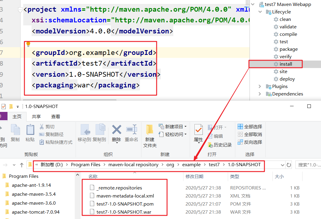 它会根据pom文件中的groupId ,artifactID,在你的maven本地仓库中生成一个你当前项目的包,