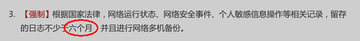3)新增涉及敏感操作的情况下日志需要保存六个月的约定。