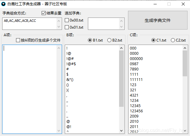 - “结果去重”选择框:勾选此项将会对最终生成的字典文件执行去除重复行操作;