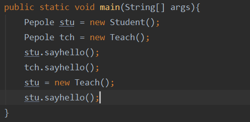 Pepole stu = new Student(); 其中 Pepole 为静态类型,Student 为实际类型。