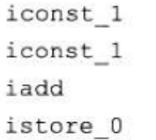两条 iconst_1 指令连续把两个常量1压入栈后,iadd指令把栈顶的两个值出栈、相加,然后把结果放回栈顶,最后istore_0把栈顶的值放到局部变量表的第0个Slot中。