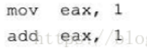 mov指令把EAX寄存器的值设为1,然后add指令把这个值加1,结果就保存在EAX寄存器里面。