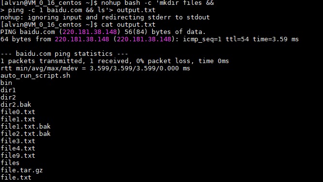 ping -c 1 baidu.com && ls'> output.txt