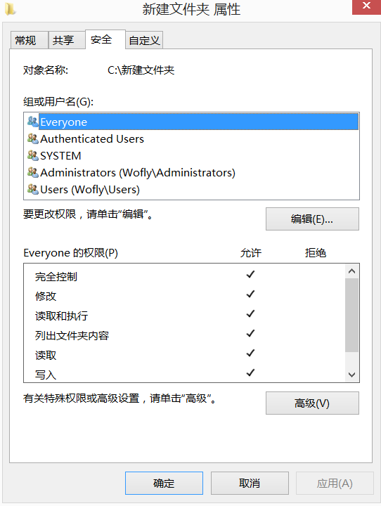 //添加ereryone用户组的访问权限规则 完全控制权限