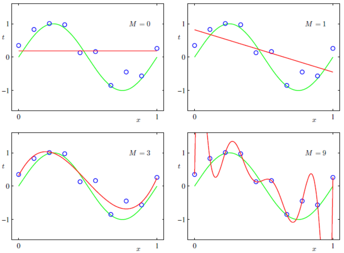 左边欠拟合,中间刚合适,右边边拟合