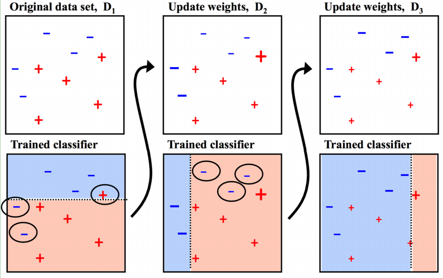 l 每次分配给分错的样本更高的权重