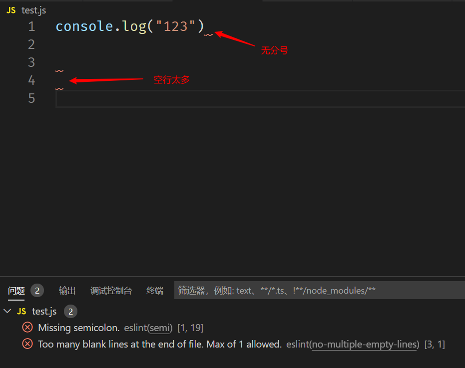 两种配置:当前项目配置(只检查当前项目)和全局配置(检查所有用vscode打开的js,html …)