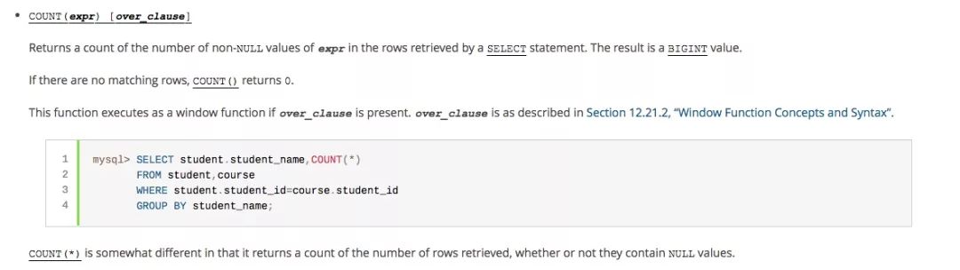 关于COUNT函数,在MySQL官网中有详细介绍: