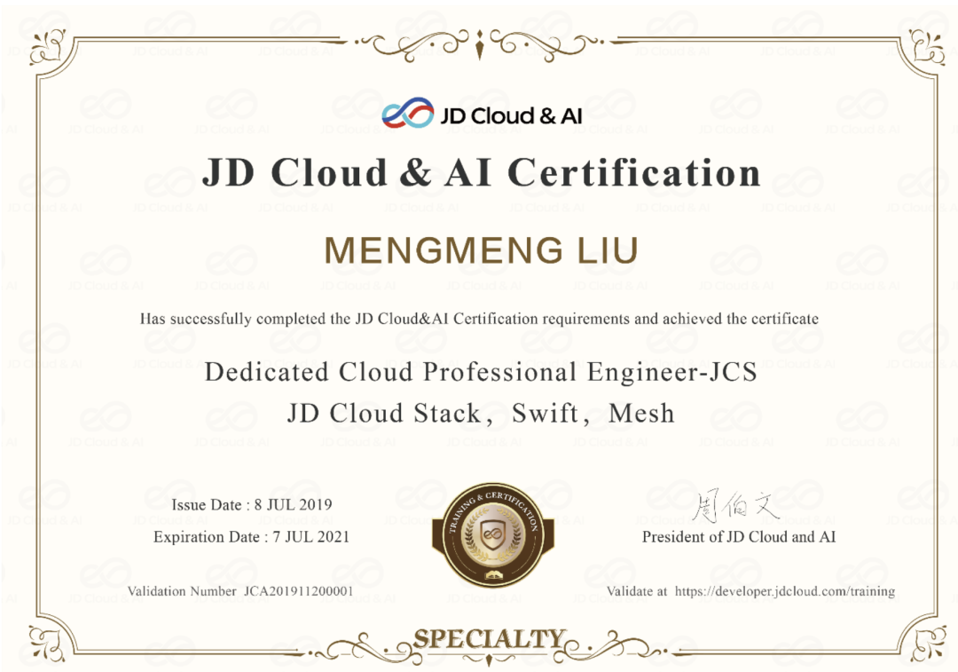 目前我们拥有京东智联云云计算助理工程师认证(JCA)及京东智联云云运维助理工程师认证(JCA)为京东智联云云基础产品用户和运维人员提供专业技术认证。该项认证内容包括京东智联云的计算服务、网络服务、存储服务及安全等方面的核心产品,是对从业人员或希望进入云行业人员的专业性技能认证。