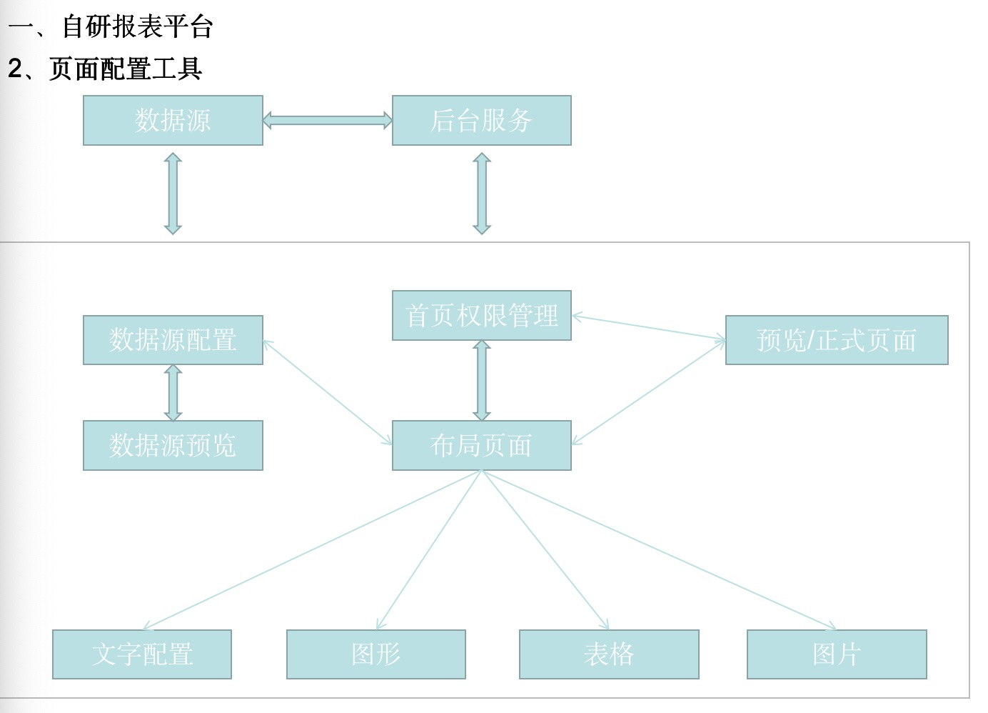 1、自研 使用web端可拖拽特性直接生成线上报表,优点是自定义样式,缺点是维护和开发工作量较大。