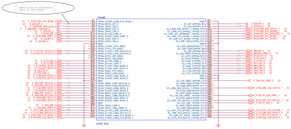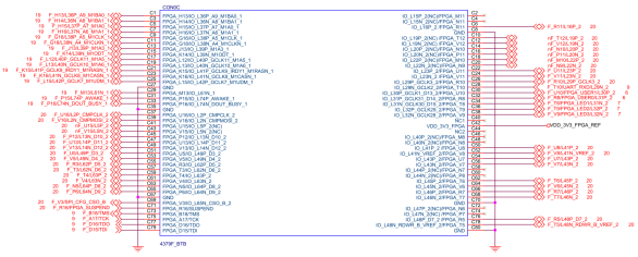 开发板使用底板+核心板设计模式,通过5个80pin、0.5mm间距、合高5.0mm的B2B连接器对接,其中底板CON0A、CON0C和CON0E为母座,CON0B和CON0D为公座,以下为底板各个B2B的引脚定义: