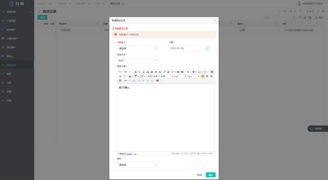 以上是使用白码平台做的一套比较简单的CRM管理系统,只能满足部分企业的业务需求,如要更加完整的业务功能,可以自定义搭建,或者通过代码扩展功能完成更加复杂的业务功能。