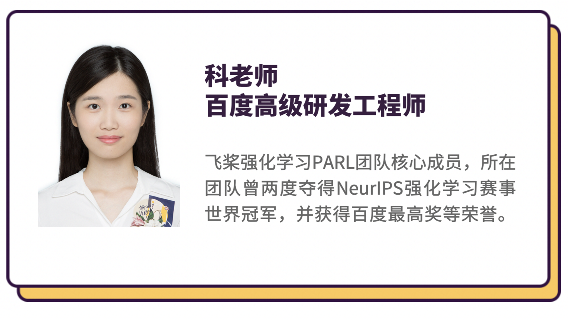 百度在人工智能的研究和应用领域不断建树,还致力于培养与选拔最具有核心竞争力的AI人才,帮助更多开发者进入强化学习这一领域。今天,连续两届获得NeurIPS全球顶会赛事冠军团队首次下场,亲自授课,带领大家从零实践强化学习!