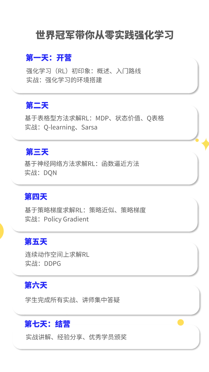 打卡营主要针对强化学习小白,只需要有一定的深度学习基础,就能参加!