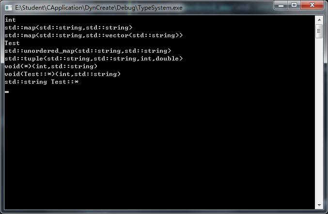 std::cout << type_name<std::map<std::string, std::vector<std::string>>>() << std::endl;