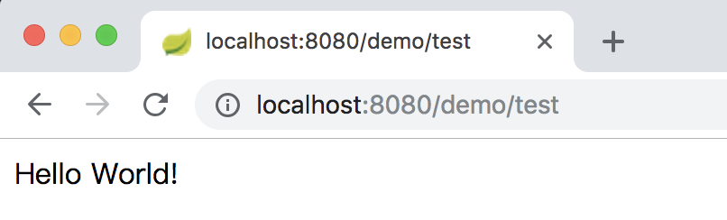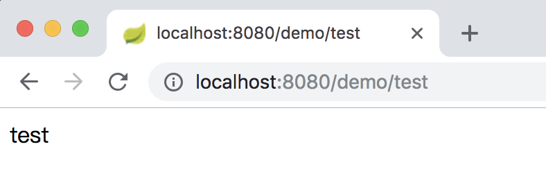设置完后重新运行main方法,项目正常启动,访问http://localhost:8080/demo/test得到如下效果