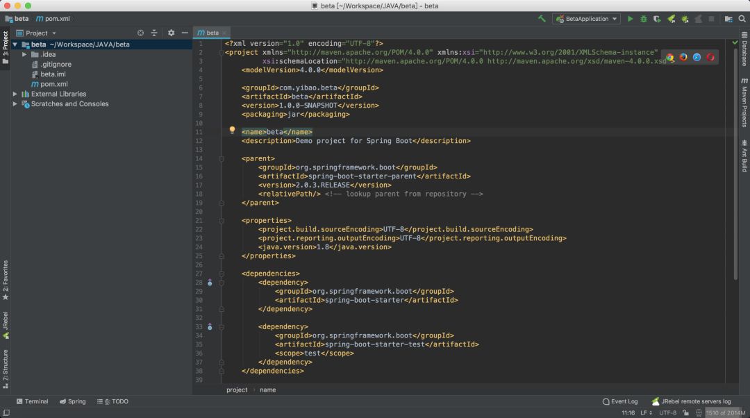 在beta-web层创建com.yibao.beta.web包(注意:这是多层目录结构并非单个目录名,com >> yibao >> beta >> web)并添加入口类BetaWebApplication.java