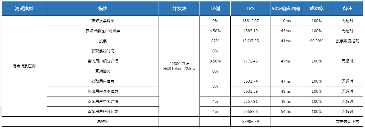 - 时延、TPS以及成功率均符合预期(投票是由于投票业务本身的流控限制)