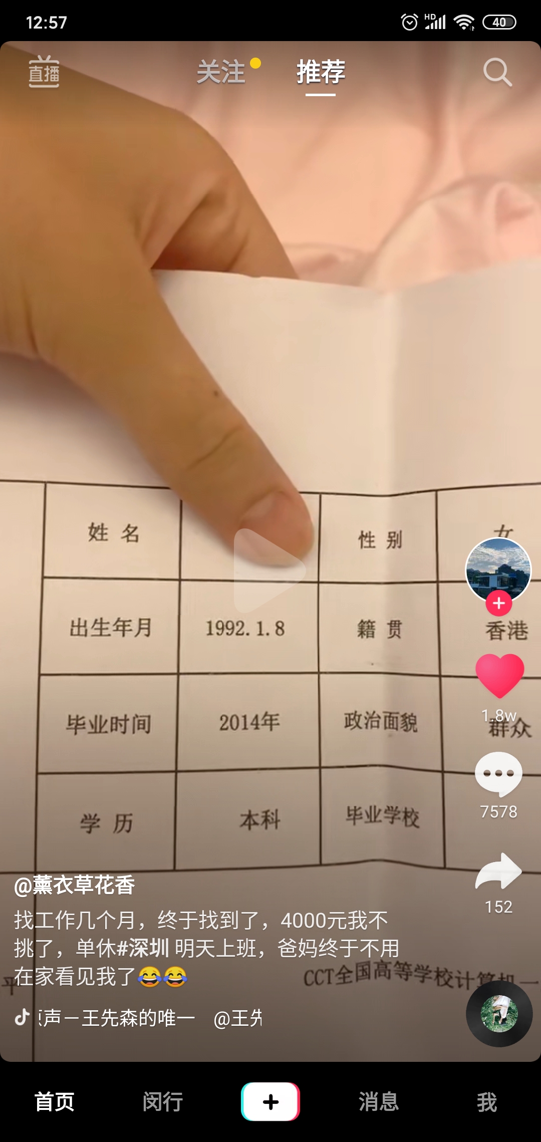 @寰宇01 :4000工资,500块钱鞋,现在女的不好追啊![]()
