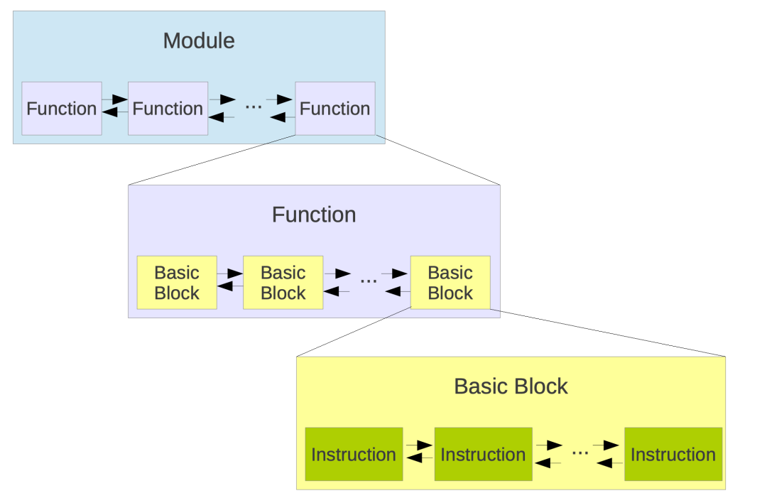 SILBasicBlock由SILInstruction组成,是线性的指令序列,每个SILBasicBlock中的最后一条指令将控制权转移到另一个SILBasicBlock,或从函数返回。可通过begin() / end()访问SILInstruction。也可以使用getTerminator()方法直接访问最后一条指令。