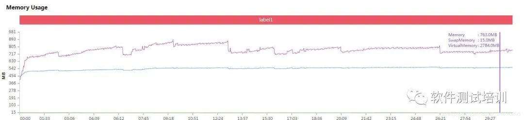 此图一出,基本就可以断定内存泄露了,这是正常玩游戏,游戏运行了30分钟的内存趋势图;