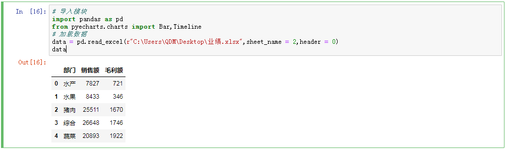 data = pd.read_excel(r"C:\Users\QDM\Desktop\业绩.xlsx",sheet_name = 0,header = 0)