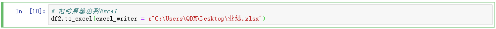 df2.to_excel(excel_writer = r"C:\Users\QDM\Desktop\业绩.xlsx")