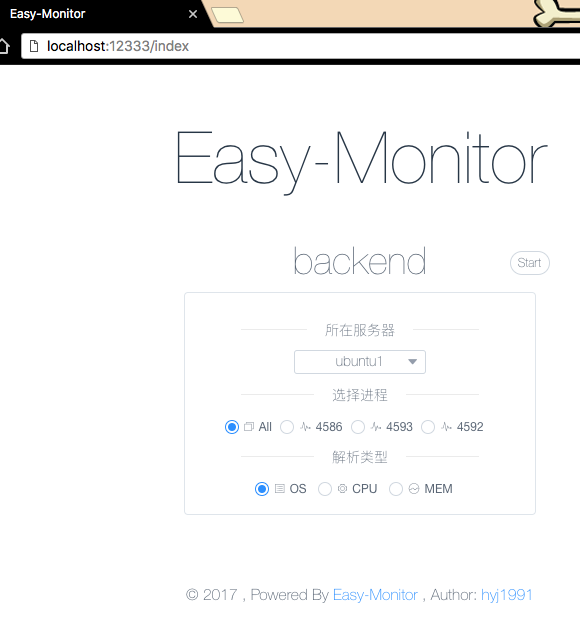 启动应用,访问:http://localhost:12333/index,即可查看Easy-Monitor的UI界面: