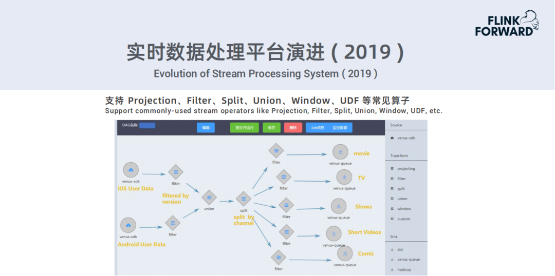 2019年基于Flink达到了内部的流数据生态平台;