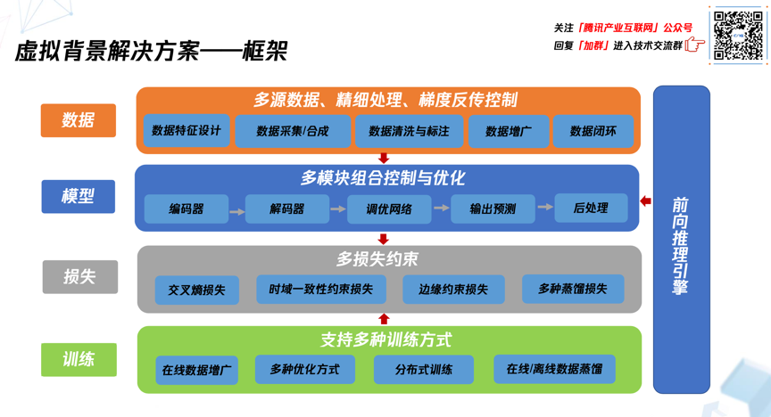虚拟背景的框架主要包括数据、模型、损失、训练和前向推理引擎五大模块。
