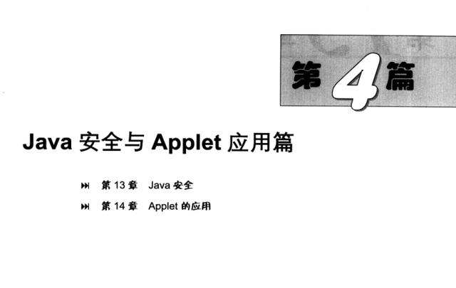 Java安全与Applet应用篇,共分为两章:Java安全,Applet的应用