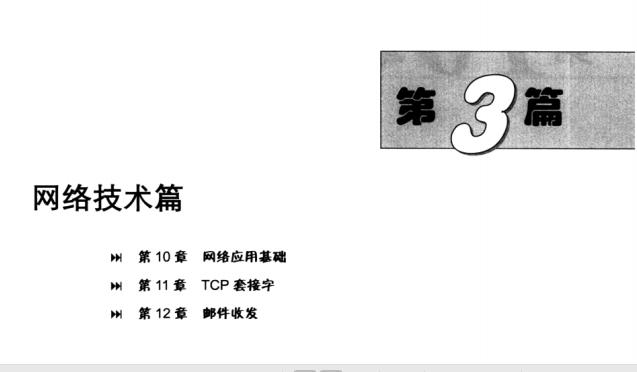 网络技术篇,共分为3章:网络应用基础,TCP套接字,邮件收发