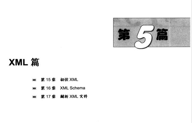 XML篇,共分为3章:初识XML,XML Schema,解析XML文件