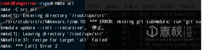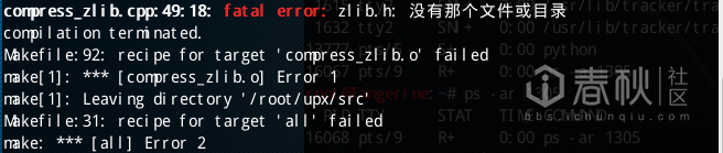 wget http://pkgs.fedoraproject.org/re ... /zlib-1.2.11.tar.xz 获取最新版本的zlib库并编译安装成功后再次运行make all编译,编译器未报错,在/src/下发现编译成功的结果upx.out