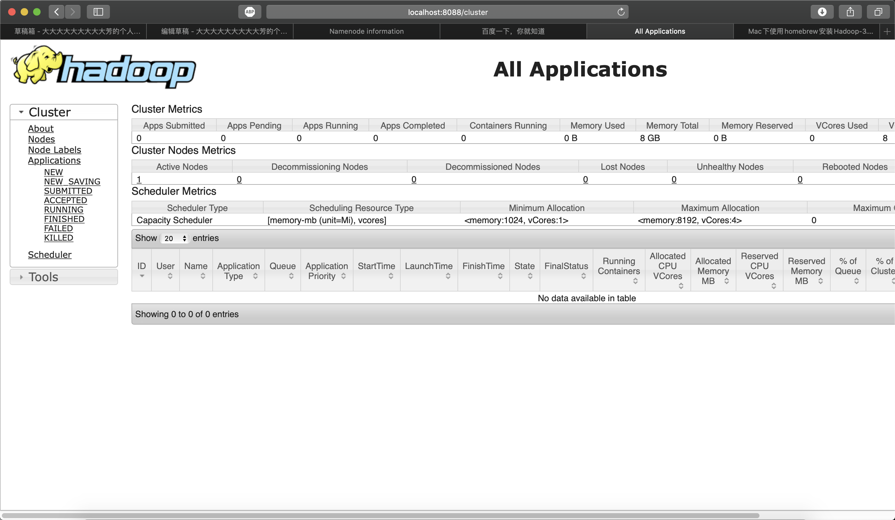 JobTracker:http://localhost:8088